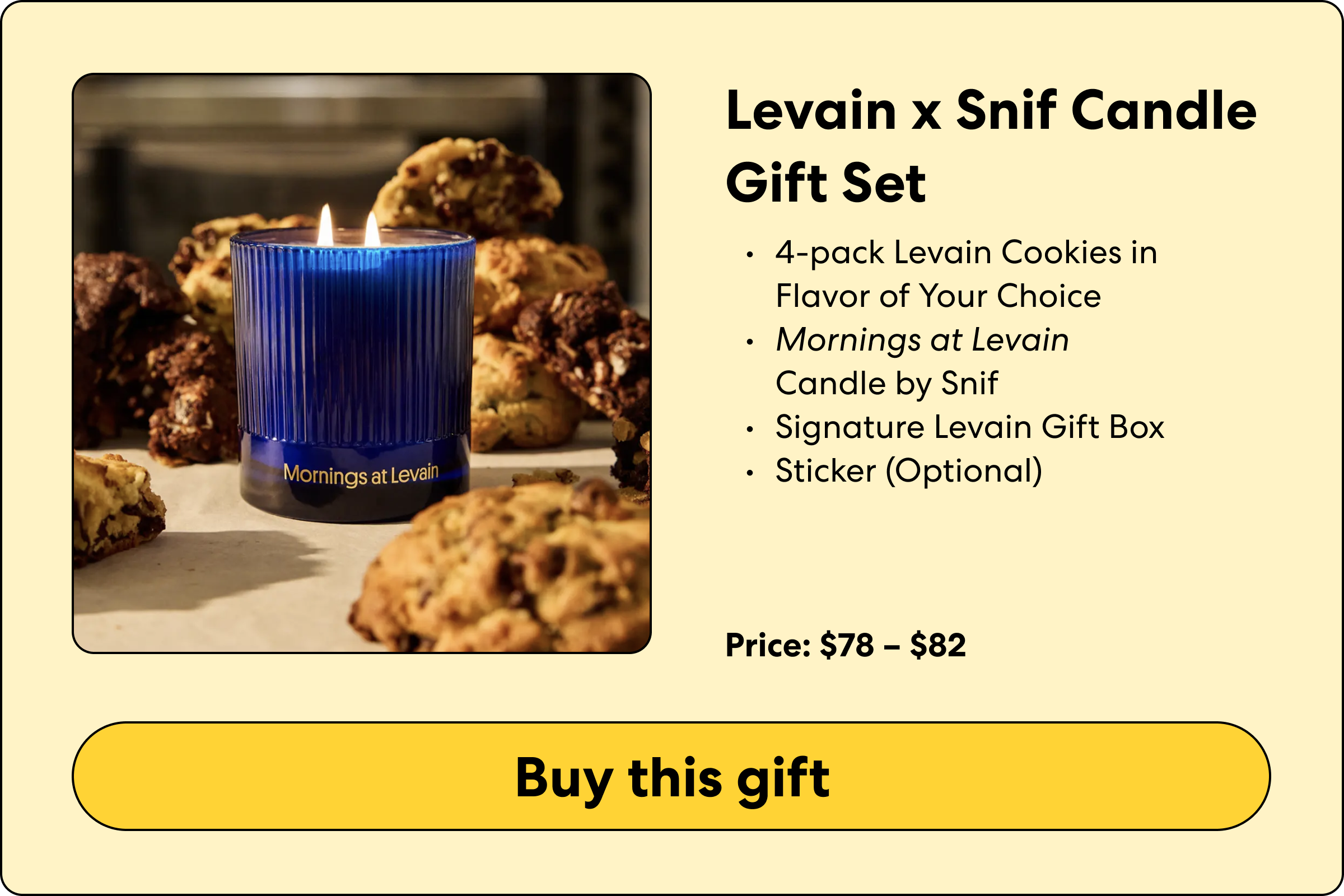 Levain Bakery knows that the second-best thing to eating a fresh-baked Levain cookie is smelling a fresh-baked Levain cookie. That’s why this gift set makes our best-of list as it comes with a stack of Levain treats and a premium candle by Snif that perfectly embodies the vibes of mornings at Levain.